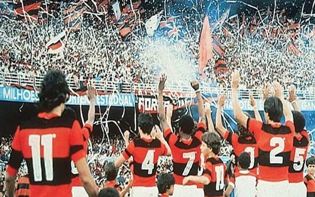 Jogadores reverenciam a torcida rubro-negra nos anos 80 - Foto: Coluna do Fla