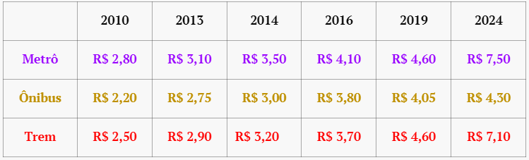 A partir da pesquisa de notícias sobre reajustes de preços de passagens, foram levantados números que escancaram esse aumento. Foram selecionados os dados desde 2010 – ano do último jogo no antigo Maracanã – até os dias atuais, passando pelos anos dos principais marcos da trajetória do novo estádio: reinauguração (2013), Copa do Mundo (2014), Olimpíadas (2016) e Copa América (2019).