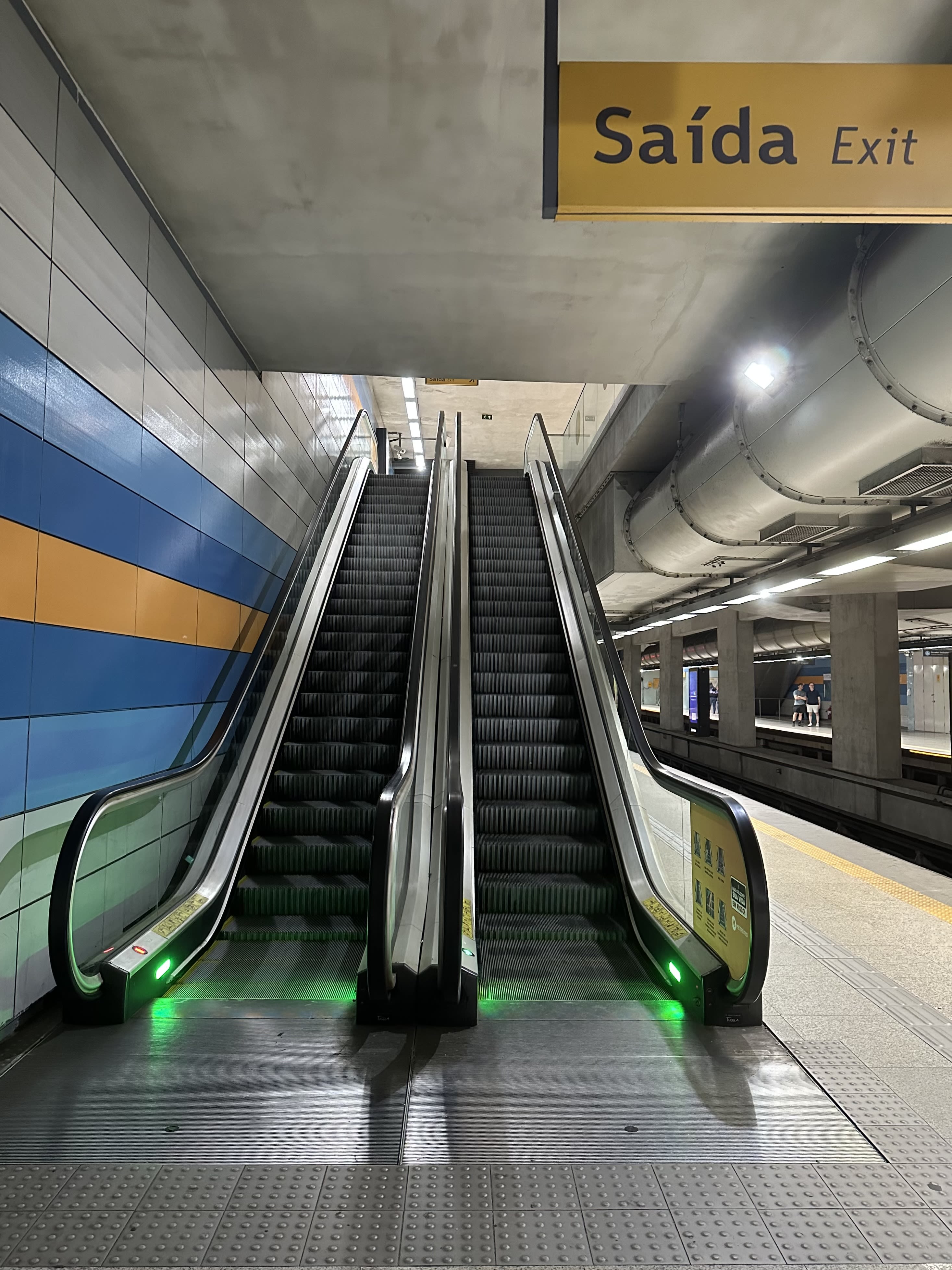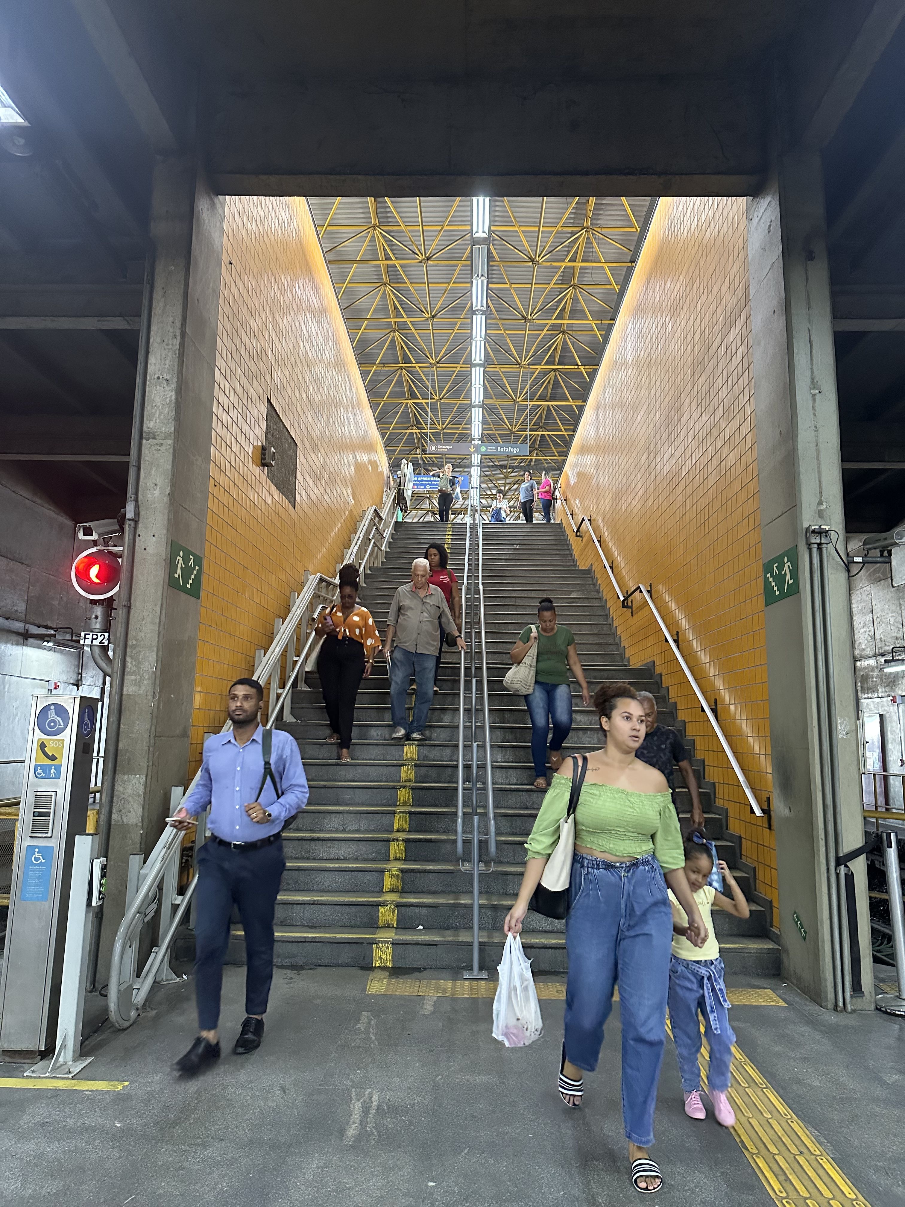 Escada que dá acesso à plataforma do metrô na estação da Pavuna